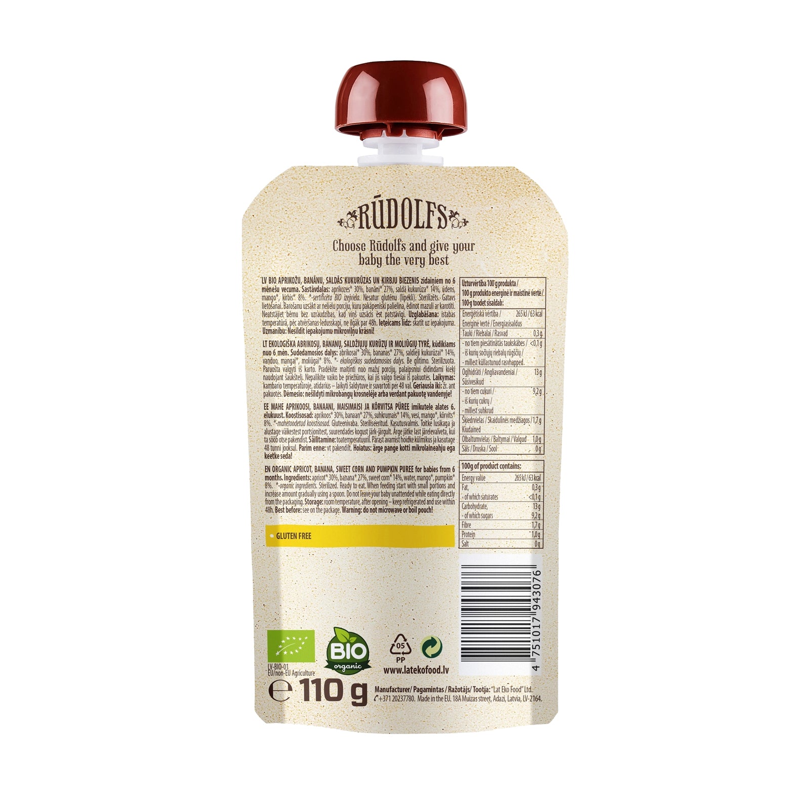 Rudolfs Baby Organic Apricot, Banana, Corn & Pumpkin 6+ Months (8 pcs)