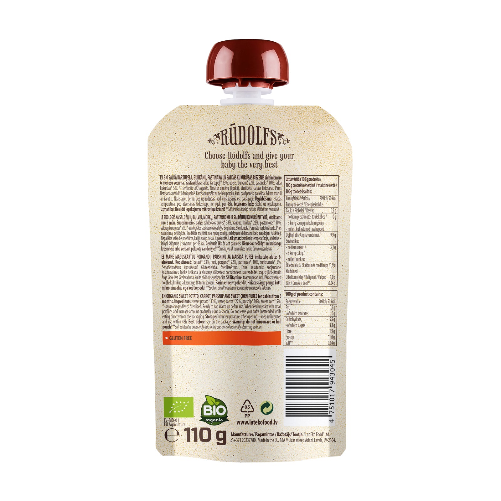 Rudolfs Baby Organic Sweet Potato, Carrot, Parsnip & Corn 6+ Months